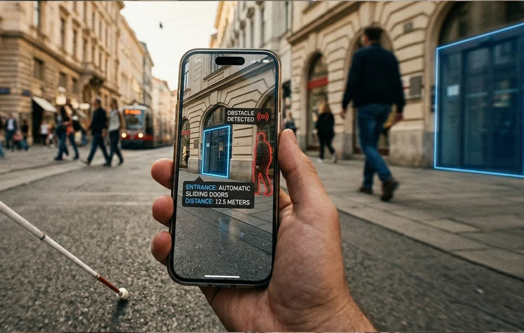 Das wohl faszinierendste Beispiel dafür ist der LiDAR-Scanner in den Pro-Modellen von iPhone und iPad. Mit der App Lupe (Magnifier) wird die Kamera dank Laserimpulsen quasi zu einem 3D-Radar. Die Türerkennung (Door Detection) löst ein riesiges Problem für blinde Menschen: die Navigation auf den letzten Metern”. Das System berechnet die genaue Entfernung zur Tür, liest Schilder per optische Erkennung vor und sagt dir, ob du die Tür drücken oder ziehen musst.